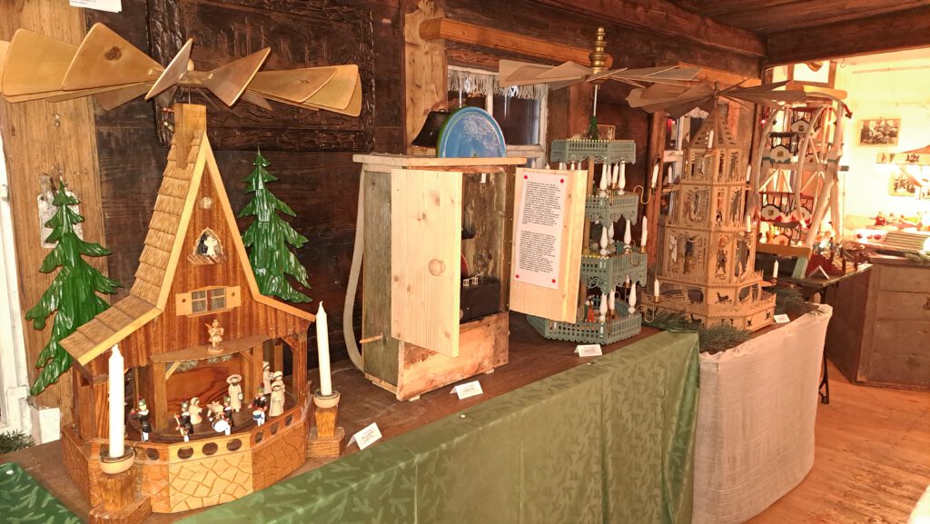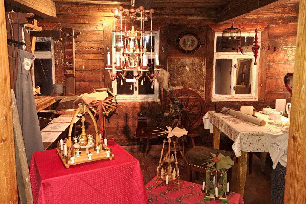 Im Museums-Hauptgebäude wurden neben Schnitzereien und Leuchtern alte erzgebirgische Figuren und verschiedene Pyramiden präsentiert.
